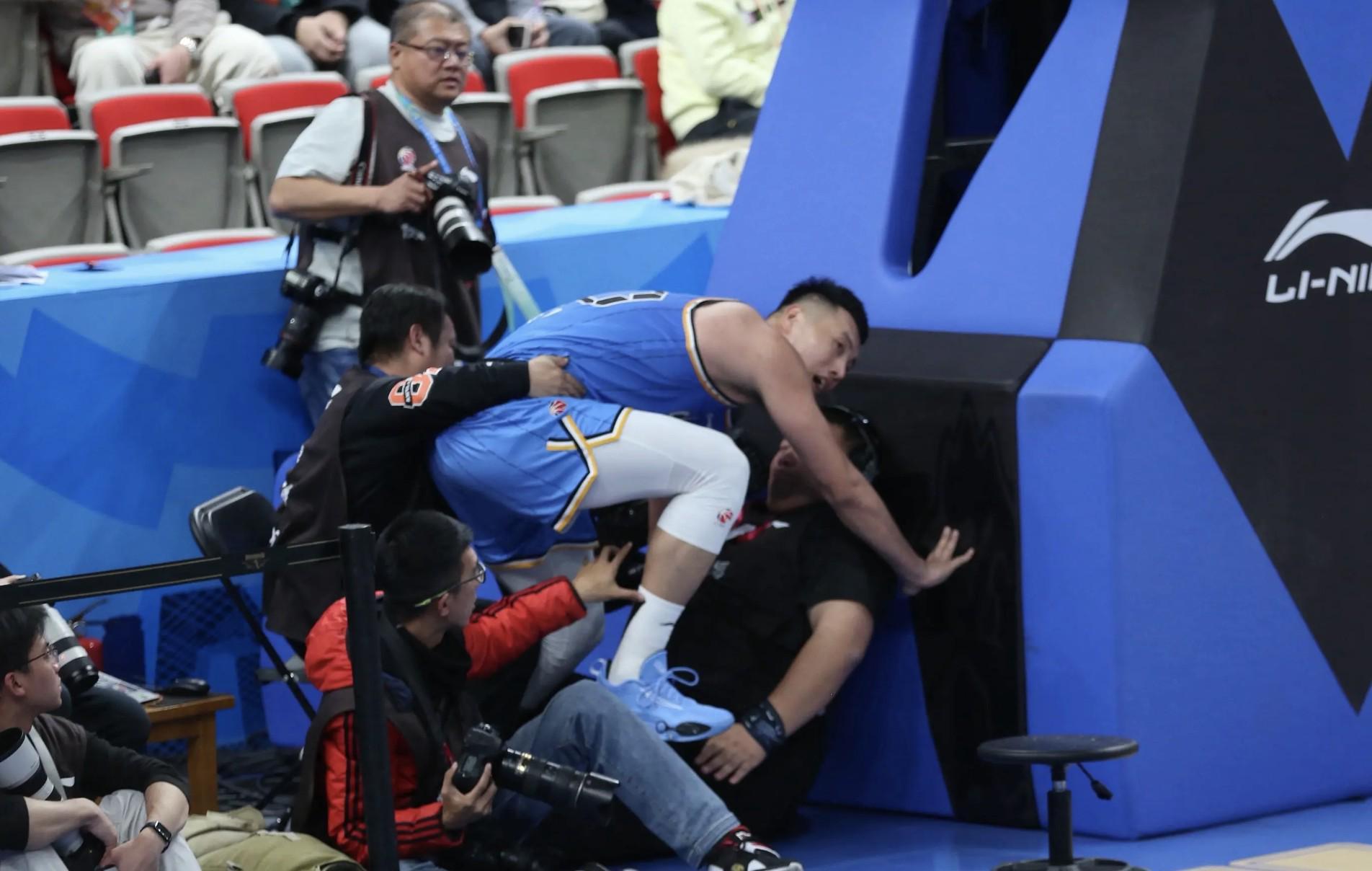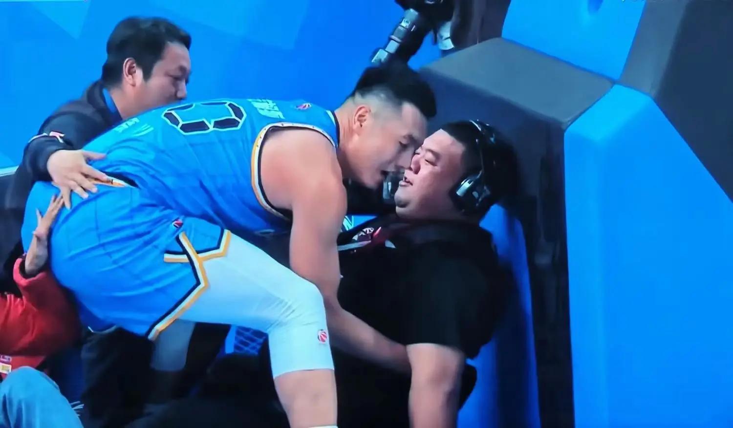 在与广东的比赛中,翟晓川在一次进攻时冲出场地,与场边的摄像师相撞,翟晓川想将摄像师扶起来,但试了两次均以失败告终。据了解,该摄像师曾是一名专业的摔跤运动员,体重超过了300斤。
