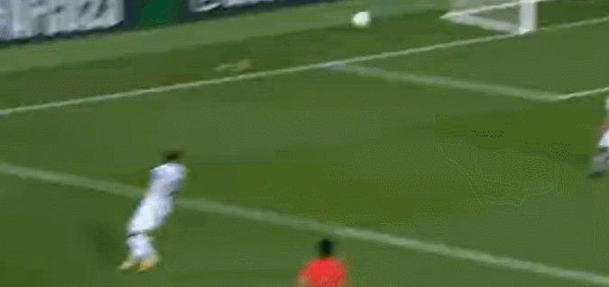 第24分钟,李镇全禁区左侧倒三角回敲,杨希门前半转身打门高出横梁