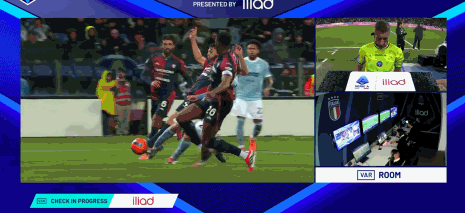 第16分钟,米雷蒂倒地,主裁判观看视频回放后取消点球判罚