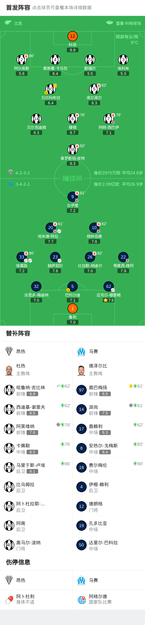 第19分钟,穆里略横传门前,古伊里铲射破门,马赛1-0昂热