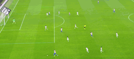 第2分钟,世界波!巴尔韦德任意球直接轰入死角,皇马1-0