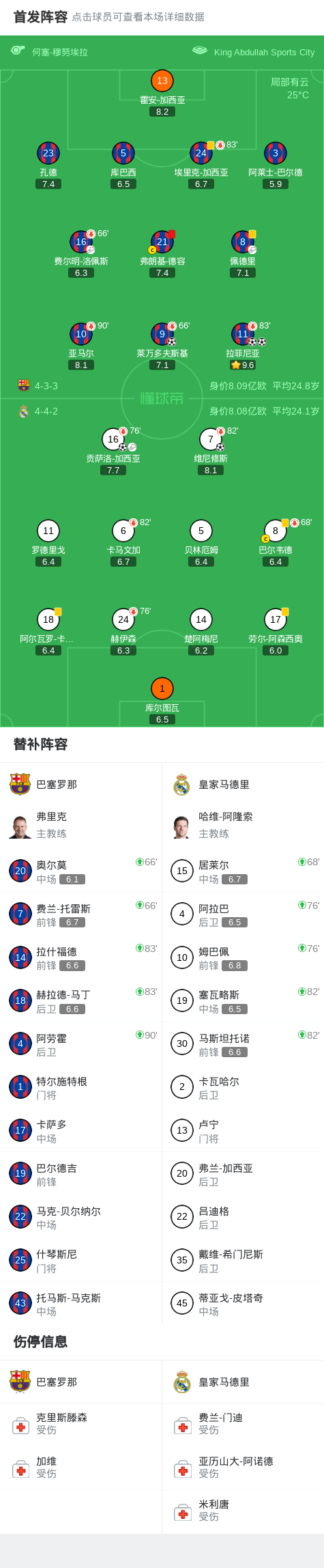 第76分钟,皇马换人调整,姆巴佩、阿拉巴替补登场