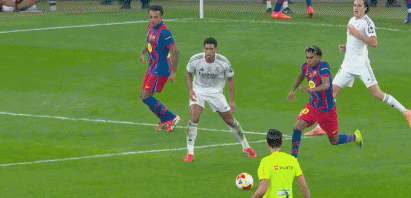 第30分钟,亚马尔突破被断,随后对贝林厄姆犯规